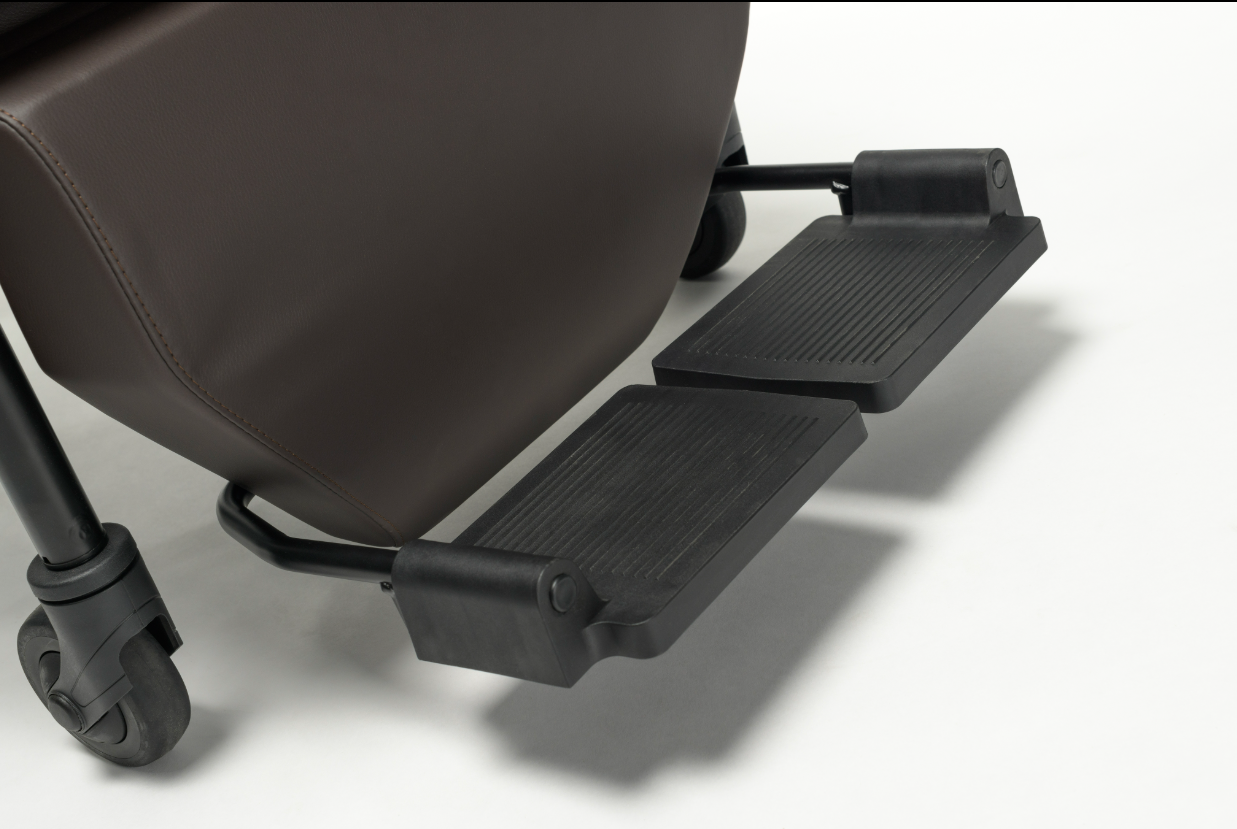 Dźwignia przy siedzisku pozwala automatycznie, w sposób płynny regulować kąt nachylenia oparcia i podparcia pod łydki.